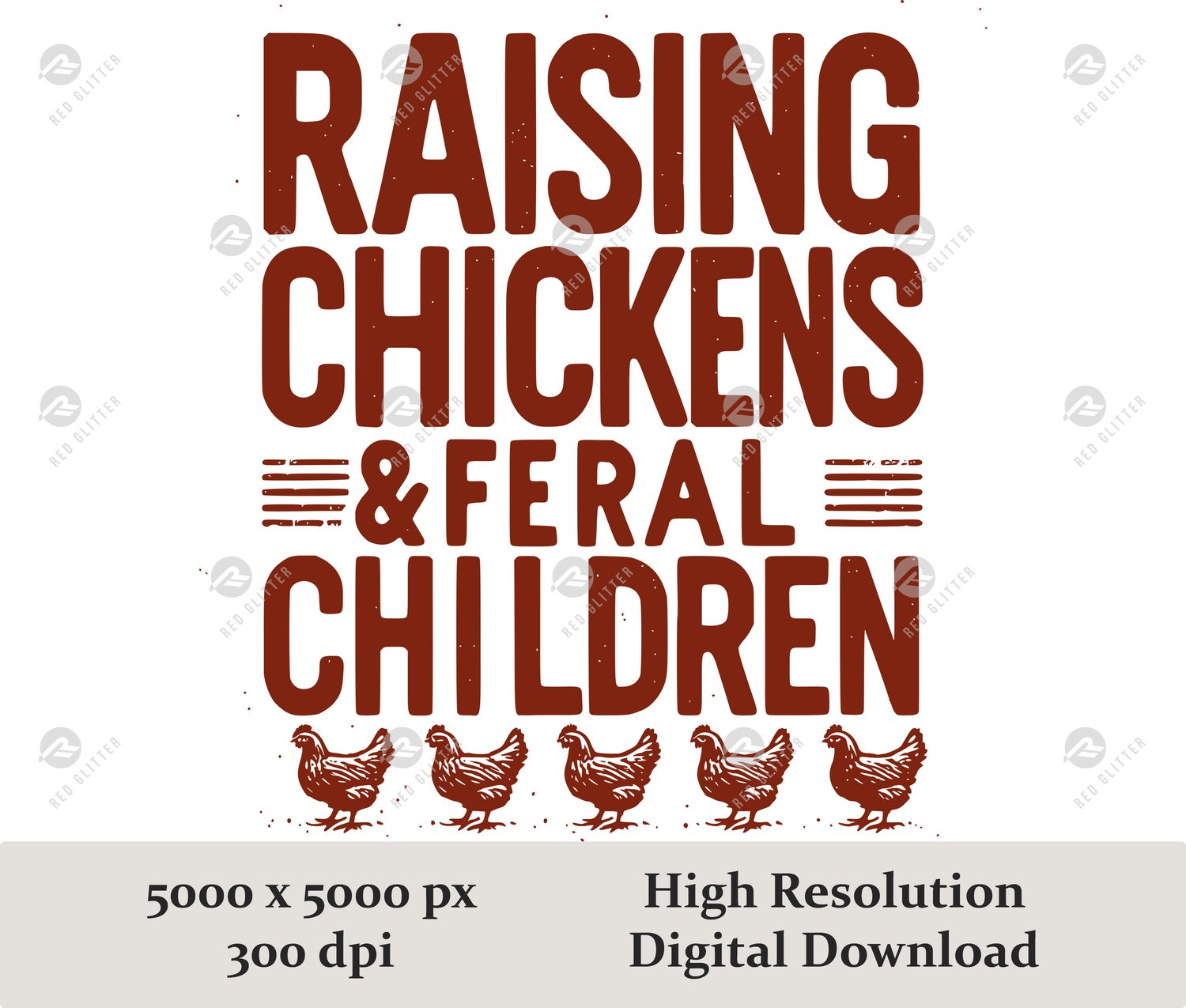 Feral Children and Chickens Png, Raising Chickens & Children Png, Chicken Mama Sublimation Design, Chicken Lover Png, Chicken Mom