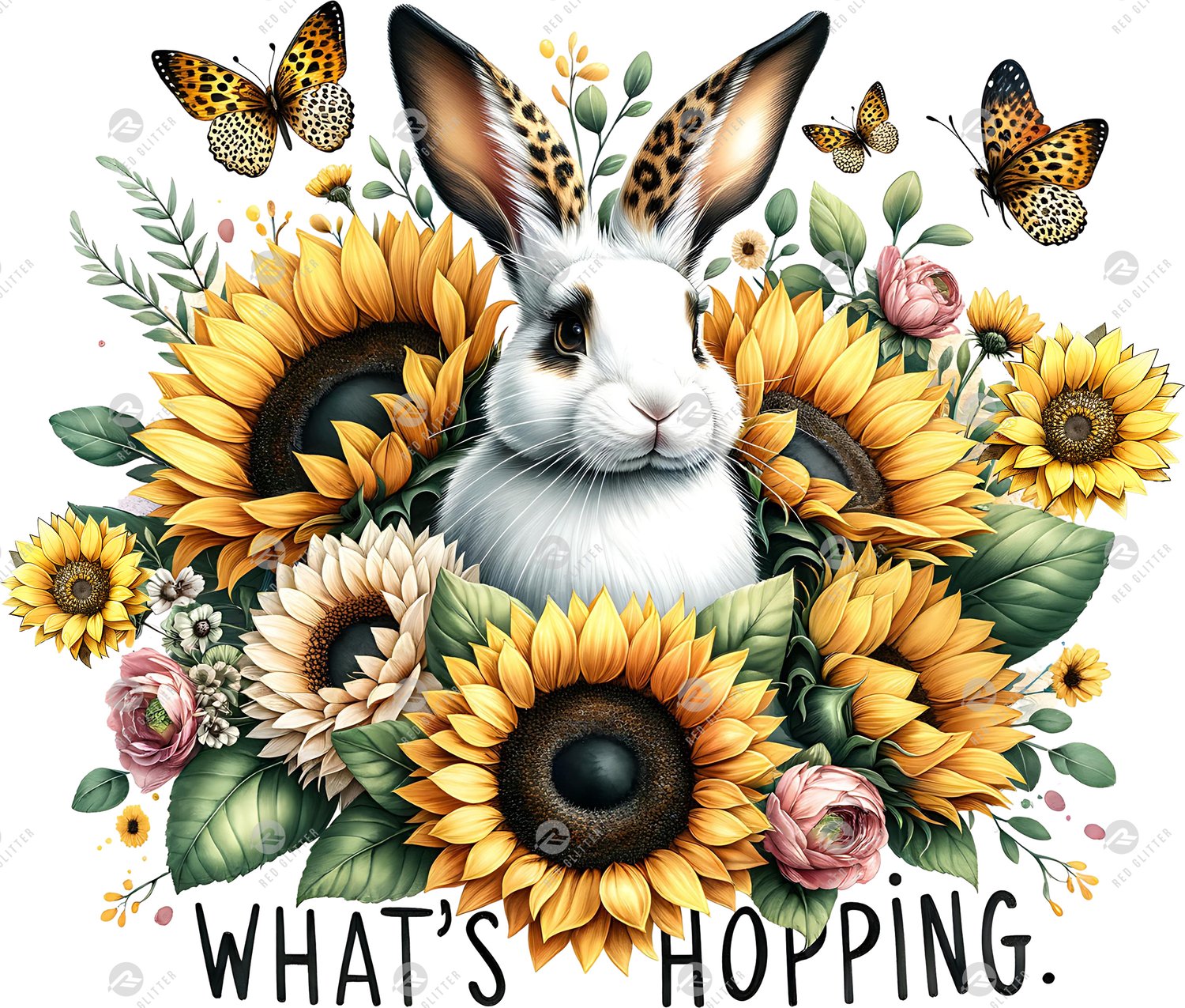 Easter Bunny Sunflowers Leopard PNG, Floral Sublimation Tumbler Design, Leopard Print Flower Digital Download
