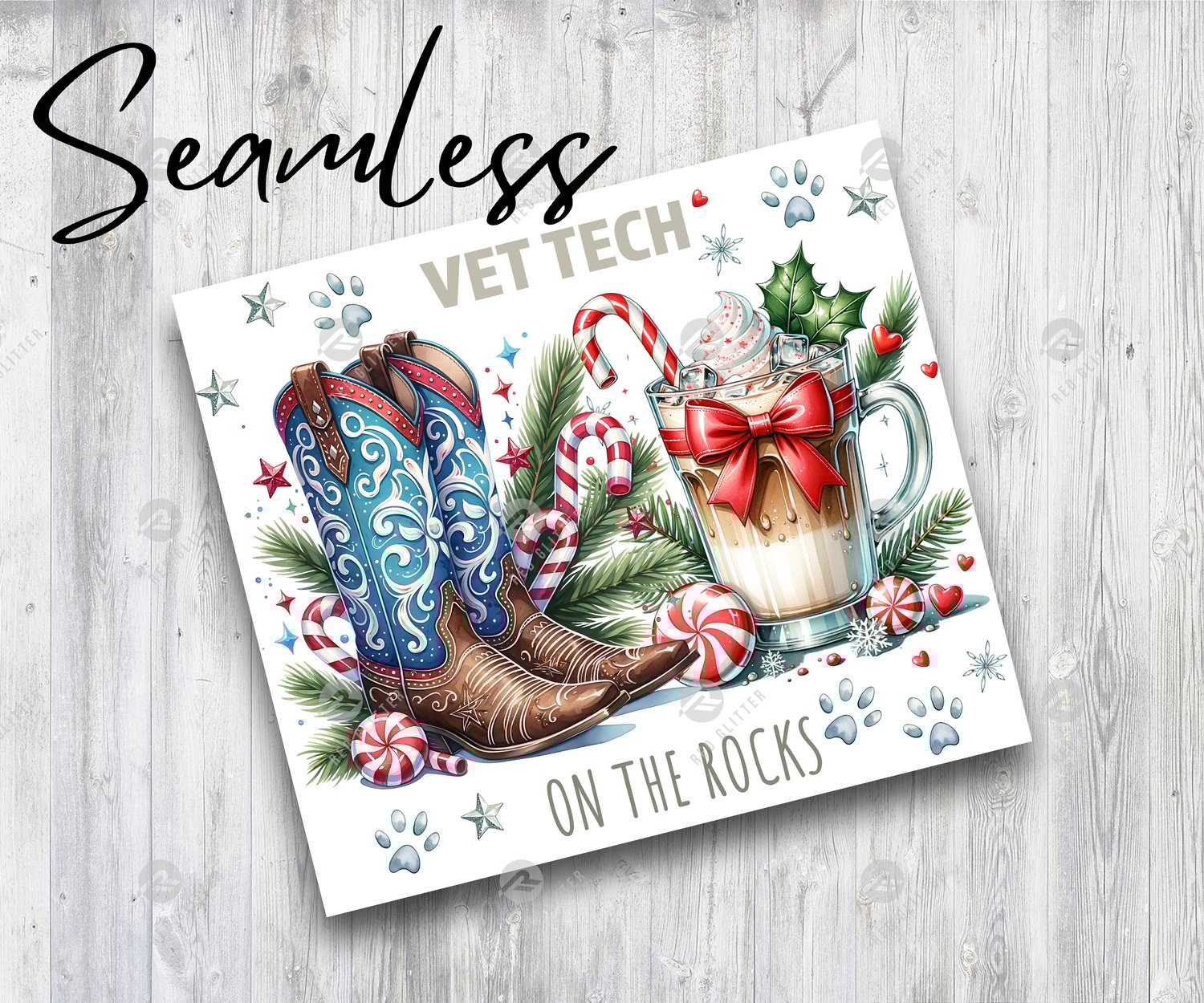 Vet Tech On the Rocks Coffee Lover Christmas Cowboy 20oz Tumbler Wrap, Veterinary 20oz Skinny Tumbler Sublimation Digital Download
