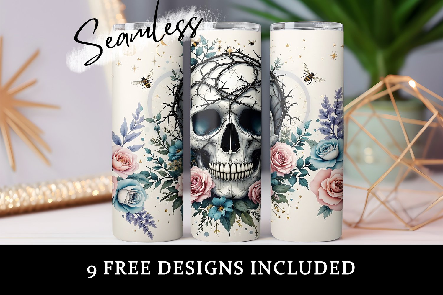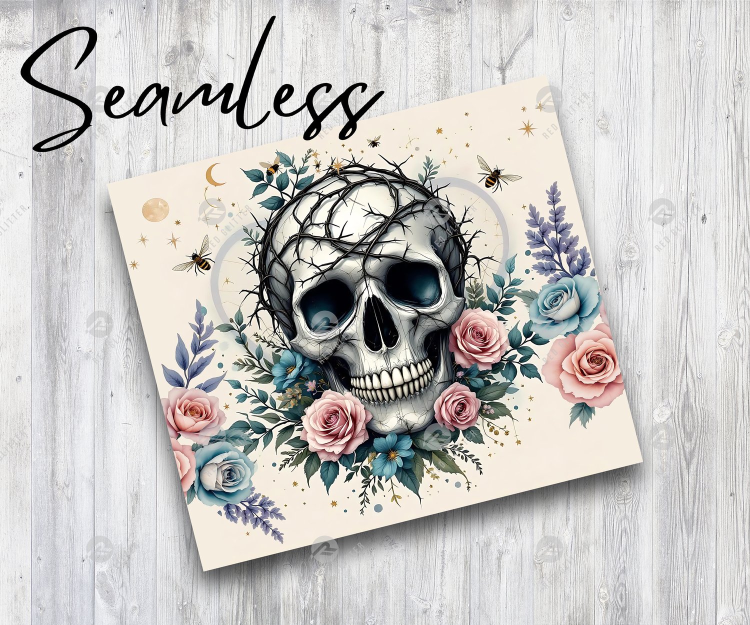 Skull Roses Hearts Tumbler Wrap, Gothic Skull 20 oz Skinny Straight Sublimation Tumbler Design, Spooky Skeleton PNG Digital Download