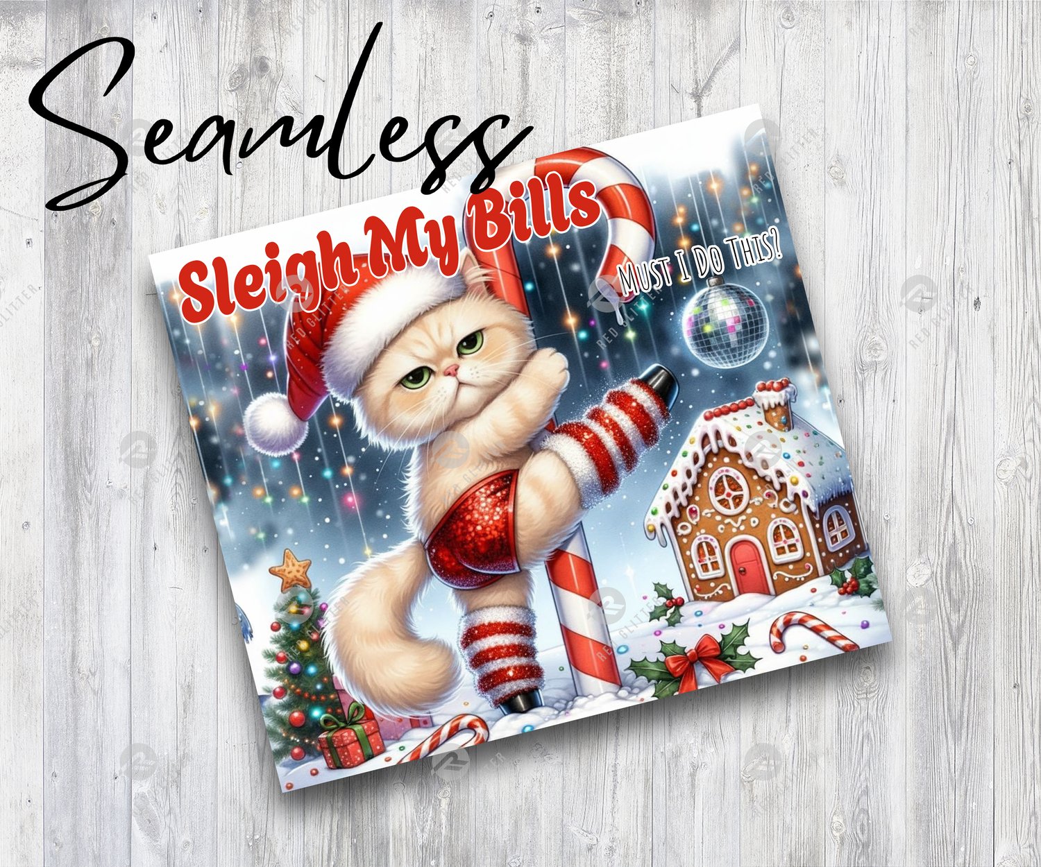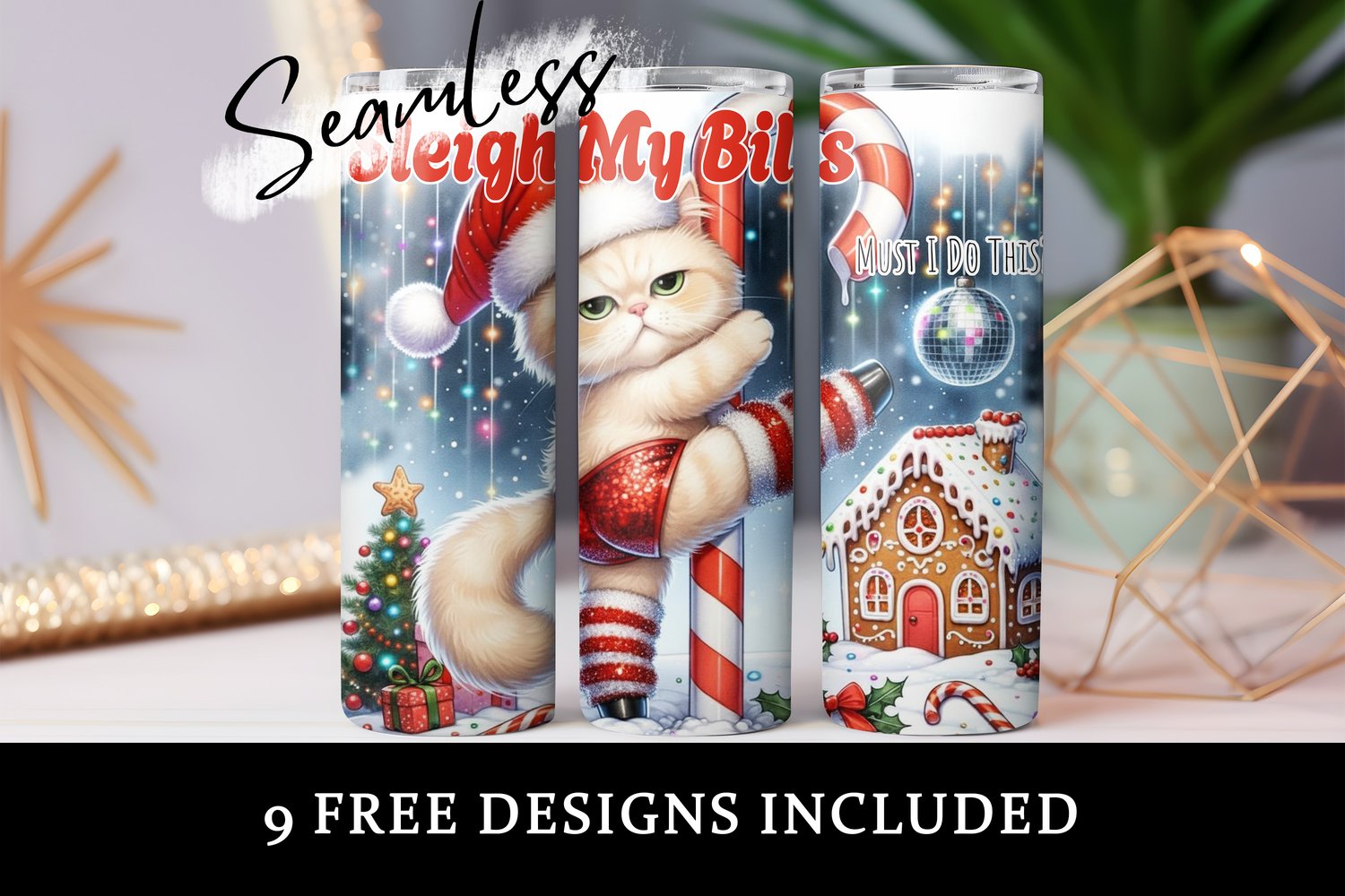 Funny Christmas Cat Sleigh My Bills 20oz SkinnyTumbler Wrap, Funny Christmas Animal Pole Dancer Sublimation Tumbler, Instant Digital Download