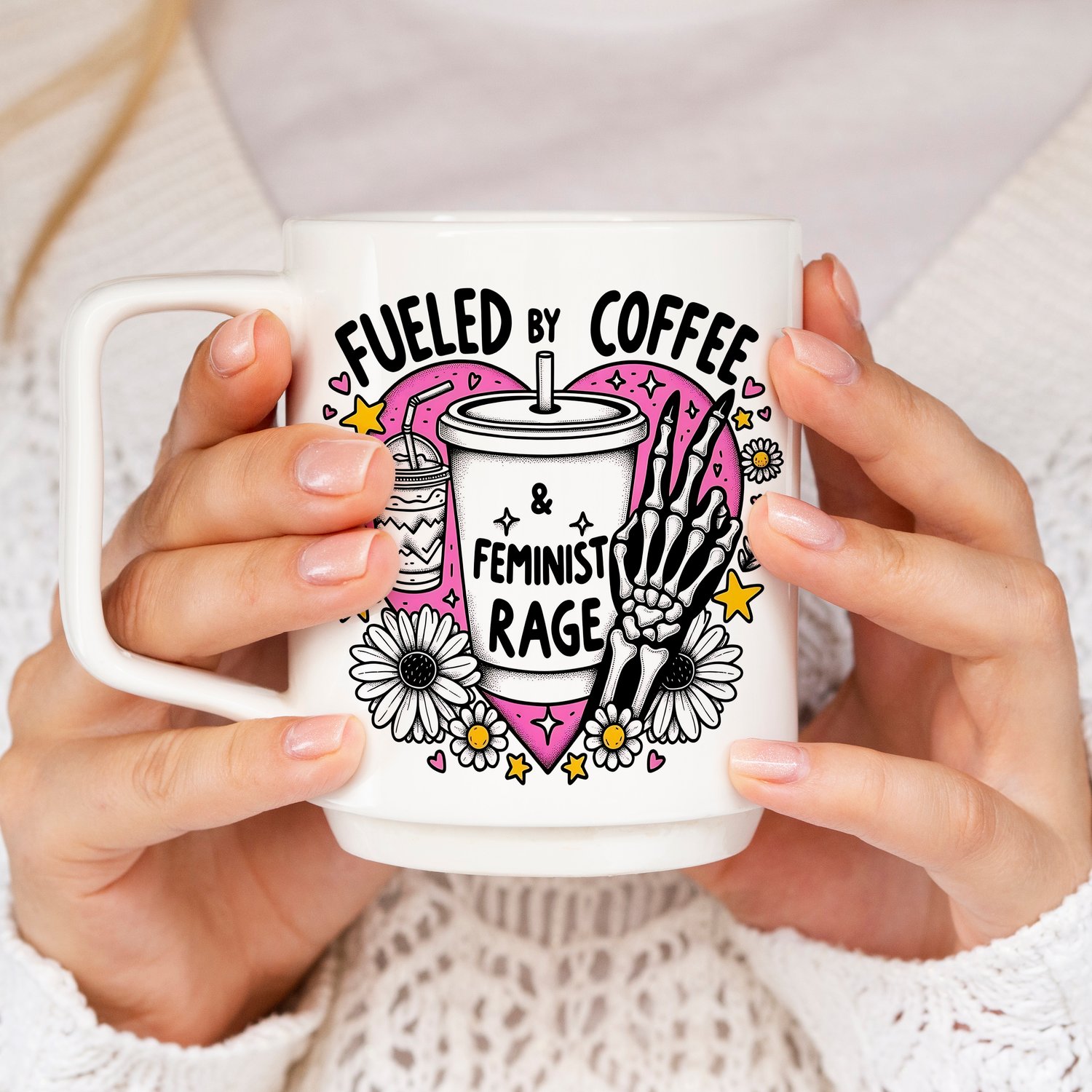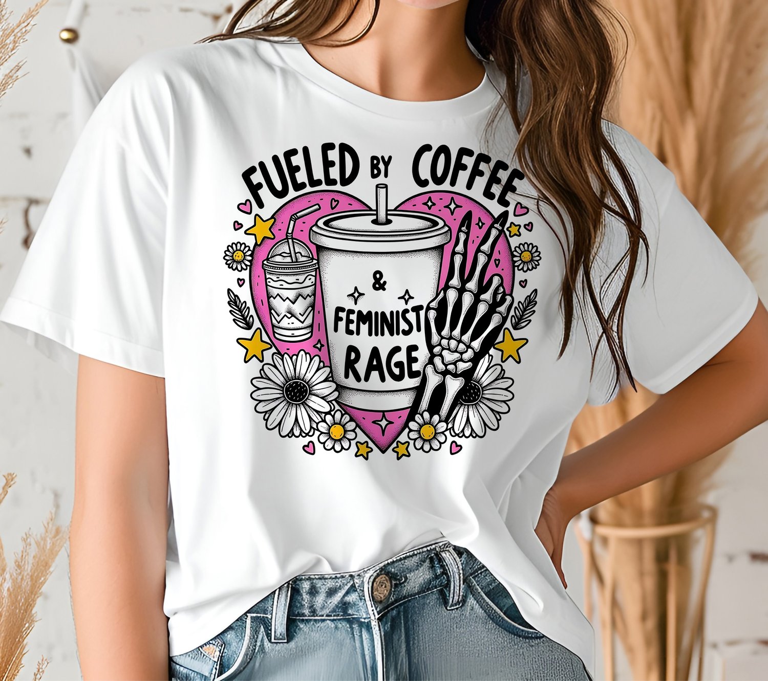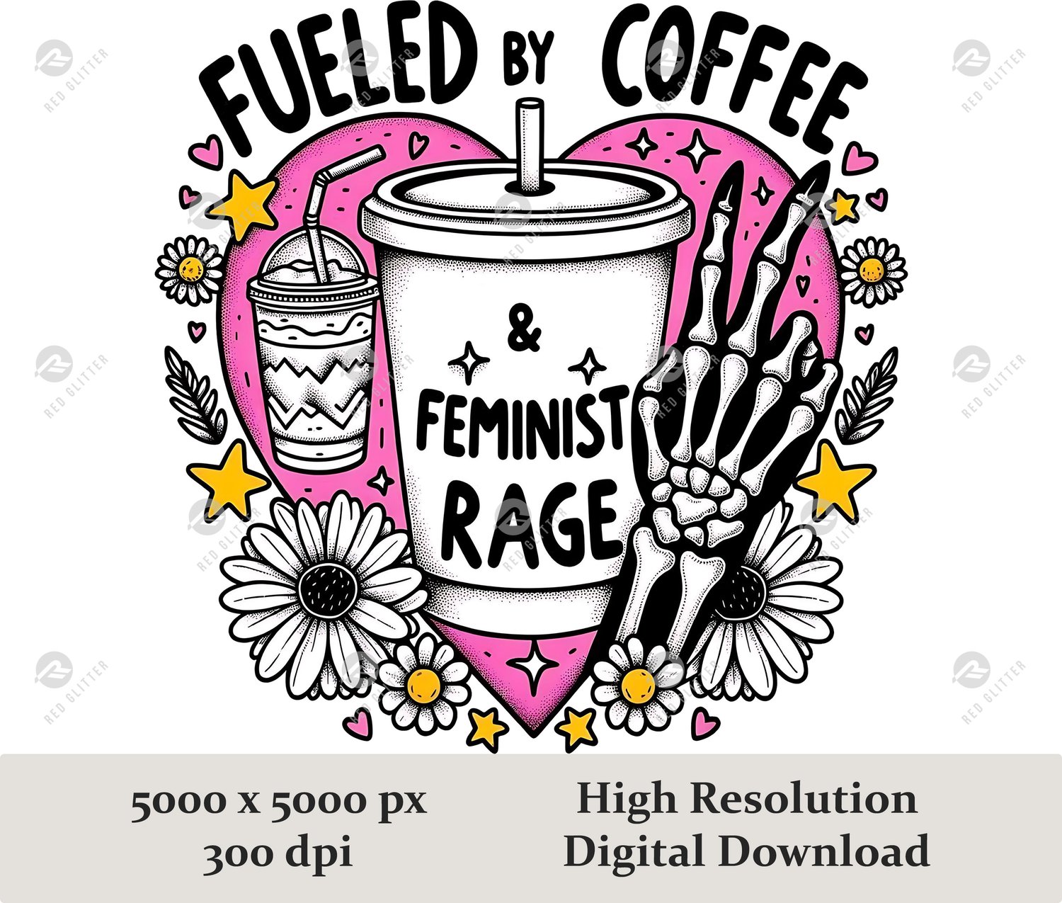 Fueled by coffee and feminist rage png, Skeleton feminist Png, skeleton aesthetic feminist Png, Sublimation feminism png