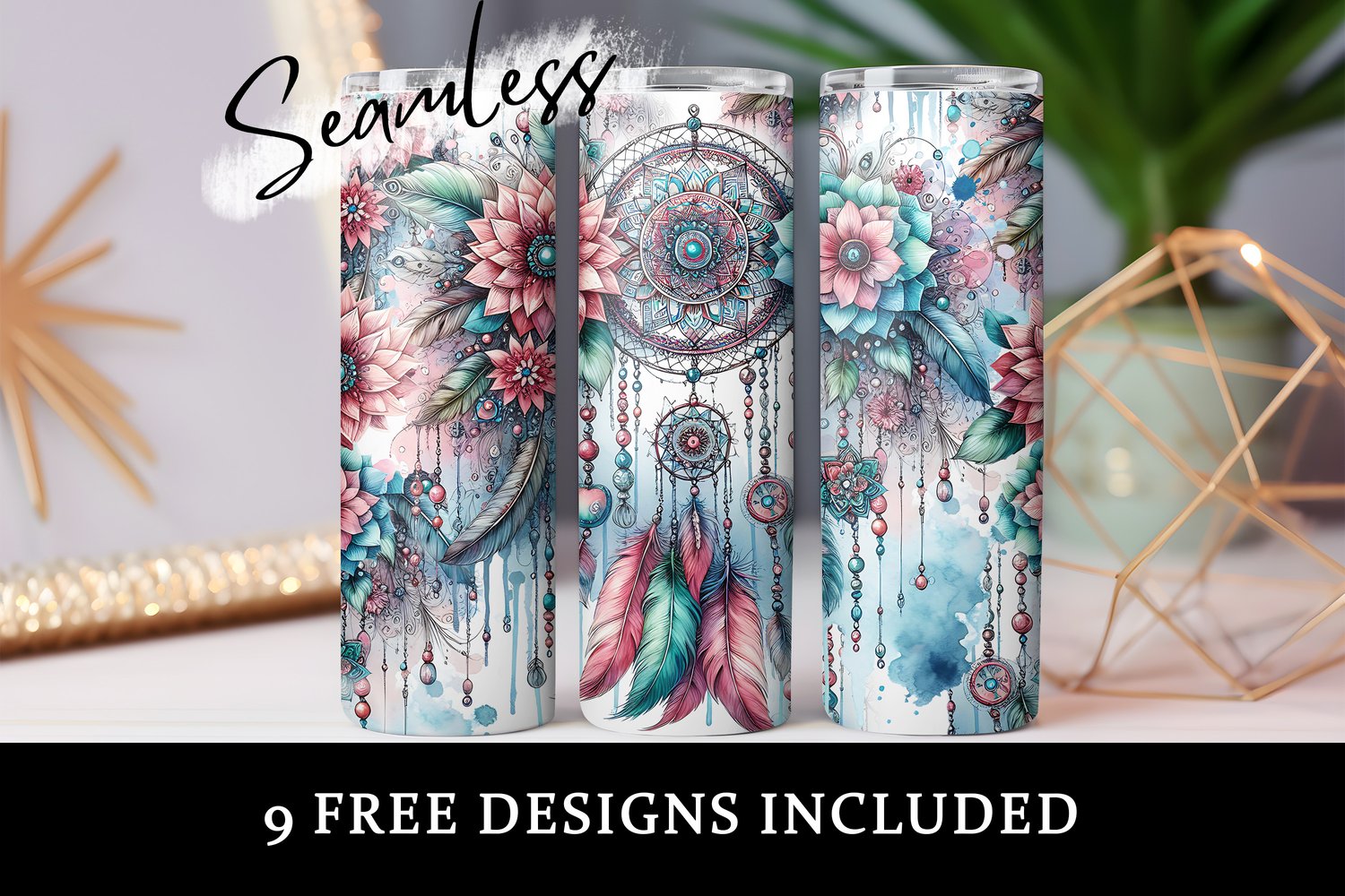 Boho Dreamcatcher Floral Tumbler Wrap, Dream Catcher 20oz Skinny Sublimation Tumbler Design, Floral Boho Sublimation Design PNG