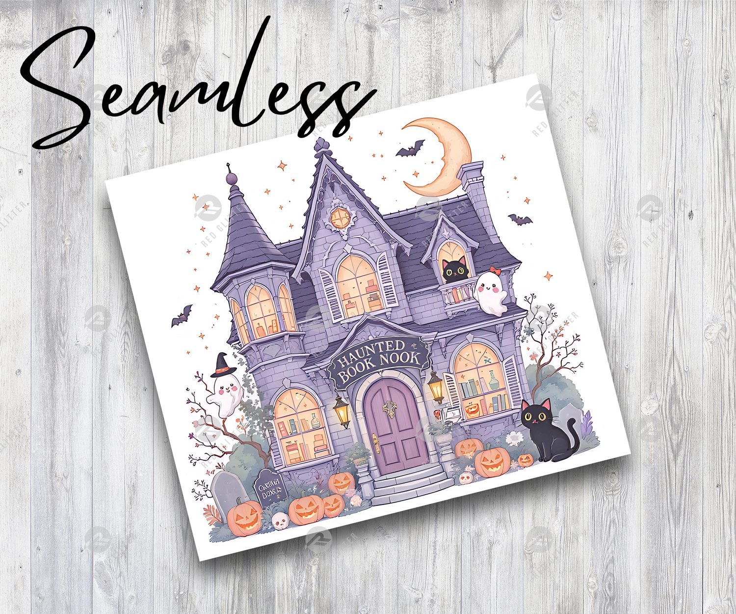 Haunted Fall Bookstore PNG, Trendy Cute Halloween Spooky Ghosts Cozy Bookish Library Sublimation Design for Stickers and Shirts