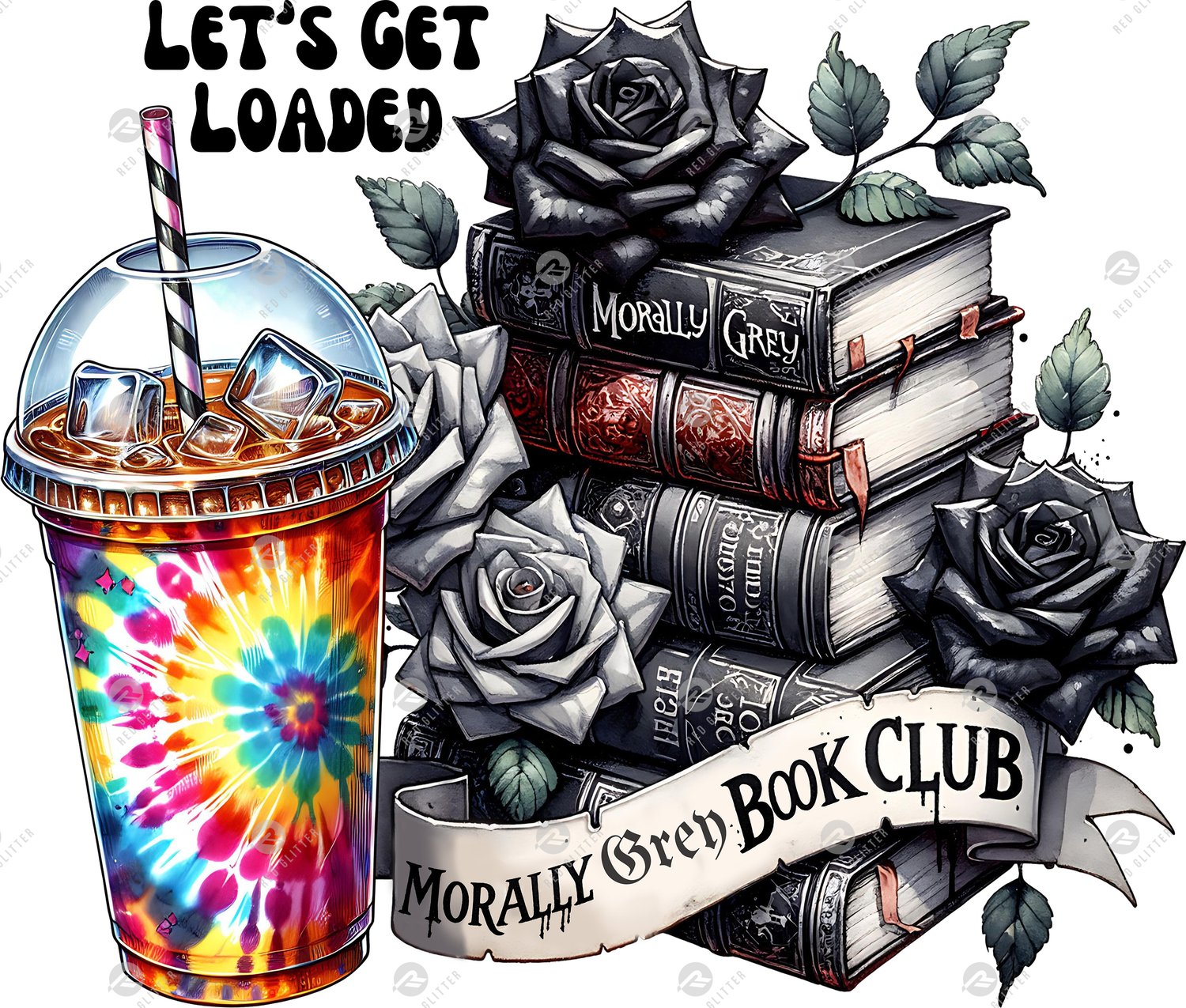 Morally Grey Book Club, Black Roses, Let's Get Loaded Tea Png Sublimation Design, Love Tea Junkie png, Get Loaded Tea Png, Summer Png, Book Club tumbler, Digital Download, 20oz Tumbler Wrap