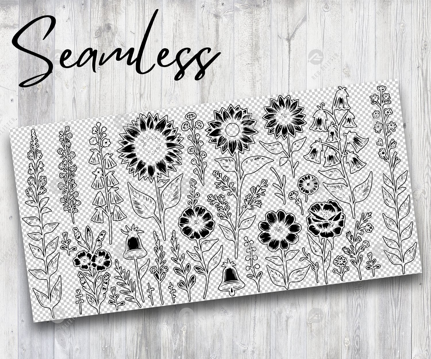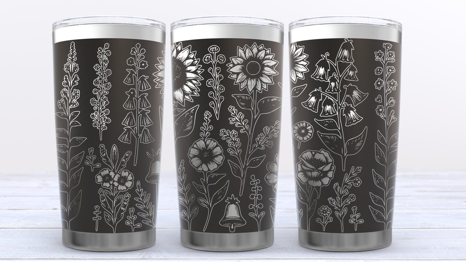 Botanical Line Art 20oz Laser Tumbler Wrap, sunflower tumbler, simple floral doodles, boho florals, laser engrave, png svg for rotary, 20oz Tumbler laser, laser full wrap
