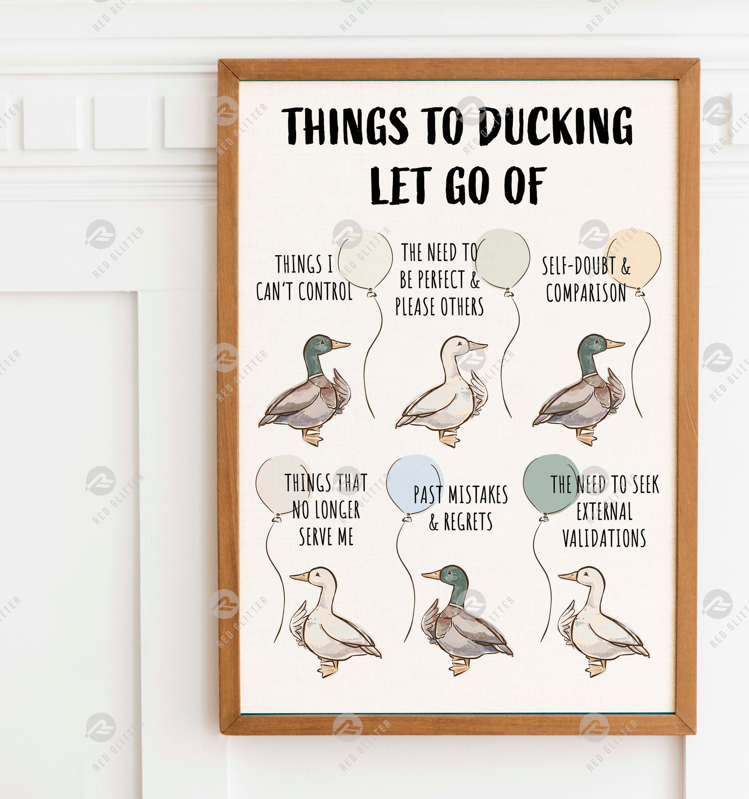 Things to Ducking Let Go of Printable Wall Art - Hand Drawn Cute Ducks & Balloons Therapy Poster, Mental Health Counselor Office Decor, Funny Psychologist Gift, Calming Anxiety Print, Self Care, Digital Download