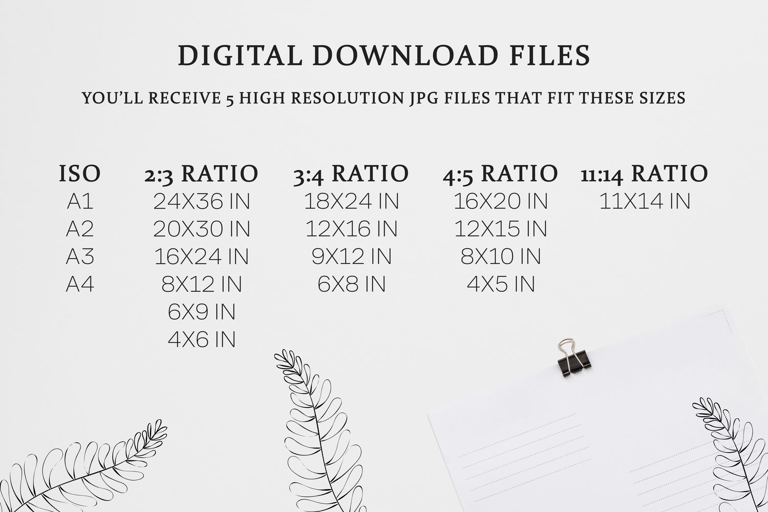 -Files are sized at 300 dpi, 5 different ratios as per listing image.