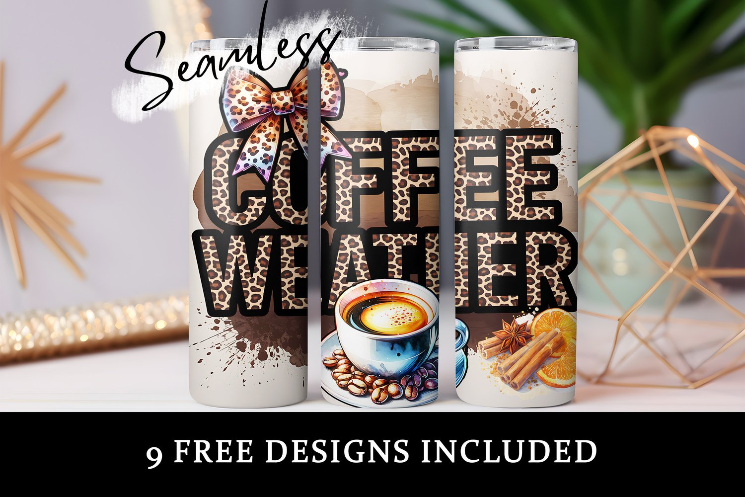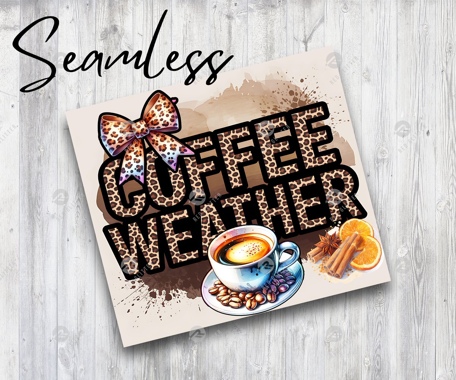 Coffee Weather Tumbler Wrap, Leopard Print Coffee Lover 20oz Skinny Sublimation Tumbler Design, Cozy Winter Digital Download