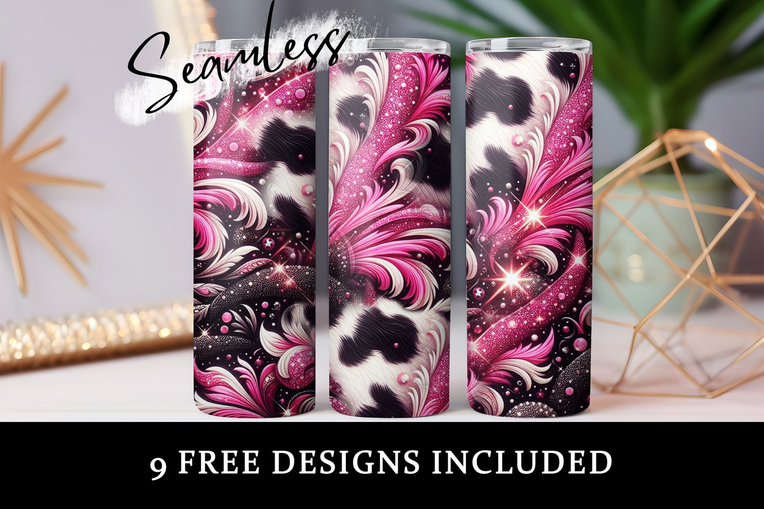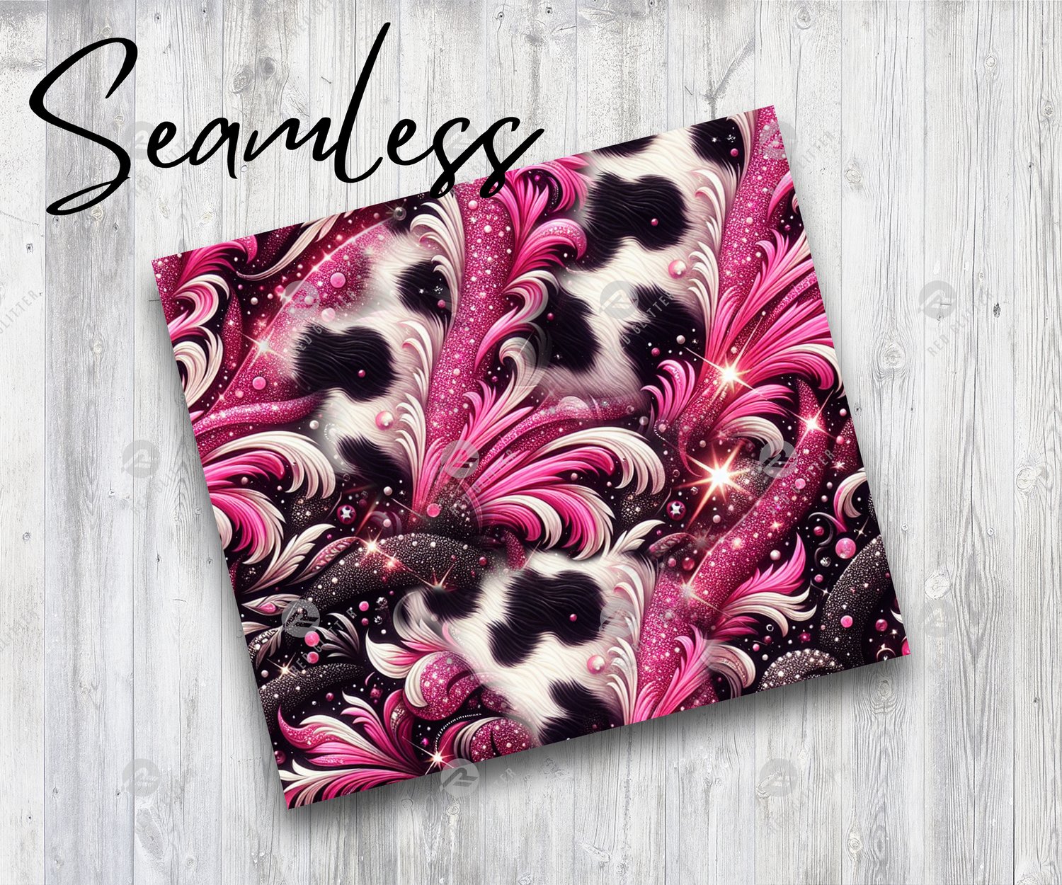 Cow Print pink glitter tumbler wrap PNG design Western black and white cowhide print Sparkle 20 oz skinny tumbler Straight digital wrap