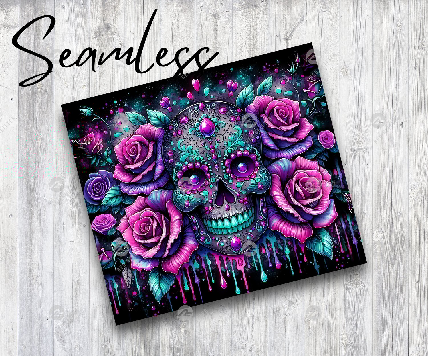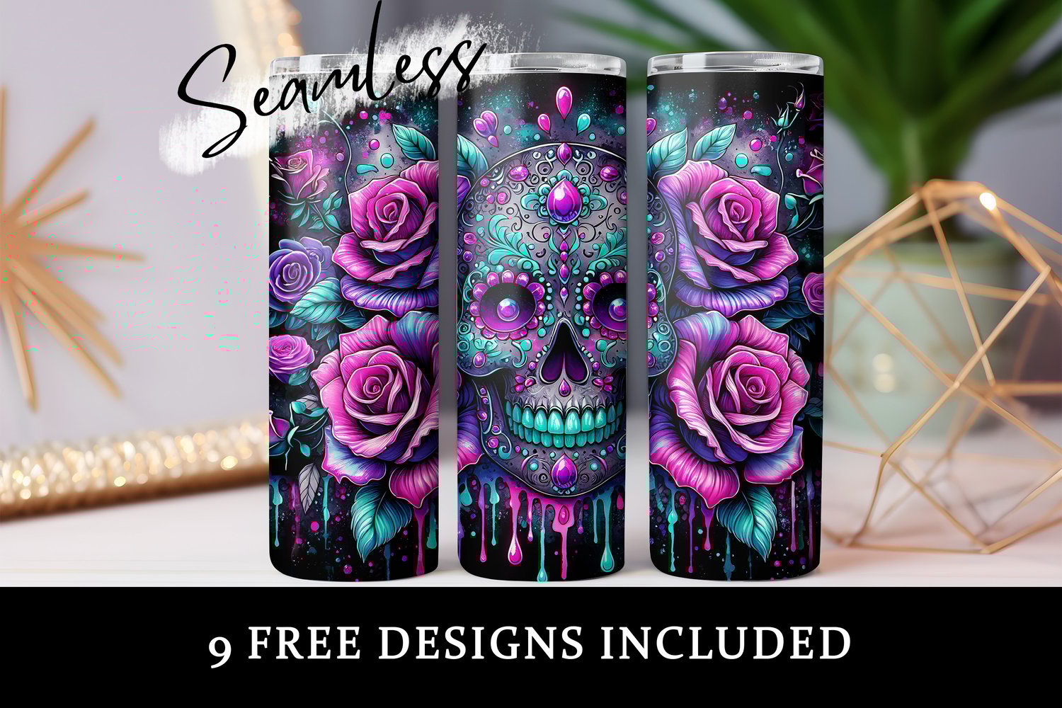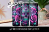 Floral Sugar Skull Tumbler Wrap, 20oz Skinny Sublimation Tumbler Design, Glitter Sugarskull Sublimation Design, Skeleton Rose Tumbler Png Wrap